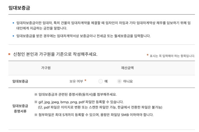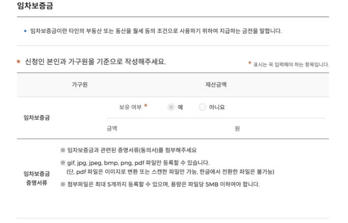 임차보증금은 전월세로 살고계신분들은 임대차 계약서 첨부 하시면 될 꺼 같구요