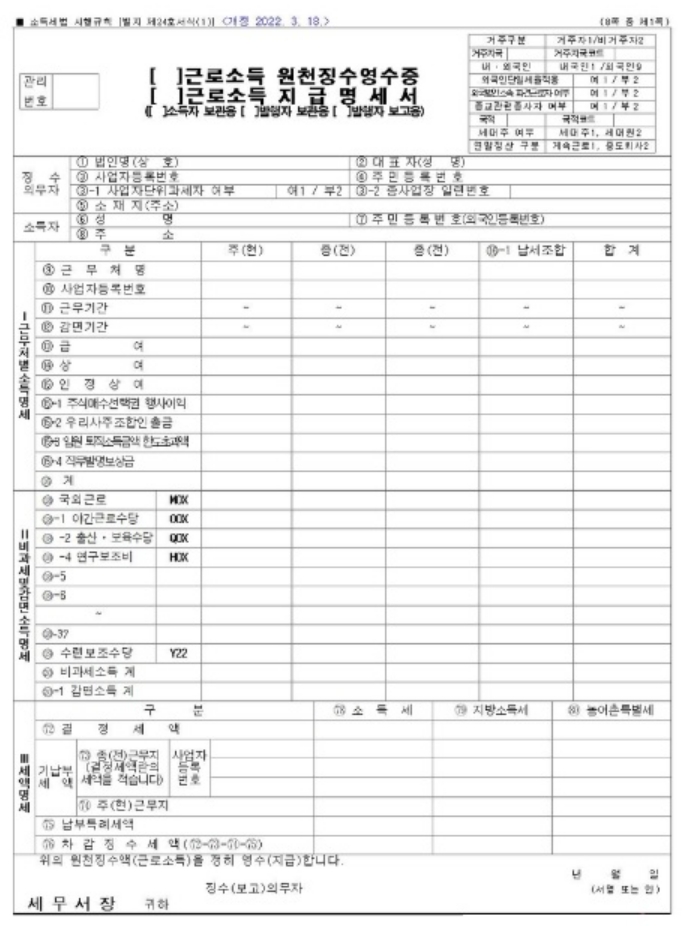 원천징수영수증 뿐만 아니라 다른 것들도 살펴보시면 좋습니다.