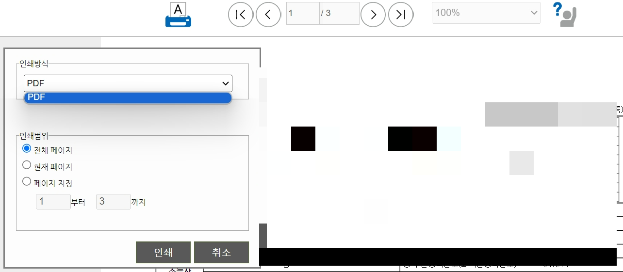 지금은 집에서 실험중이라 이렇게 인쇄방식이 PDF 밖에 안나오지만 회사같은 경우에는 인쇄 방식이 PDF 나 프린트 같은 종류 선택이 가능 할 것입니다.