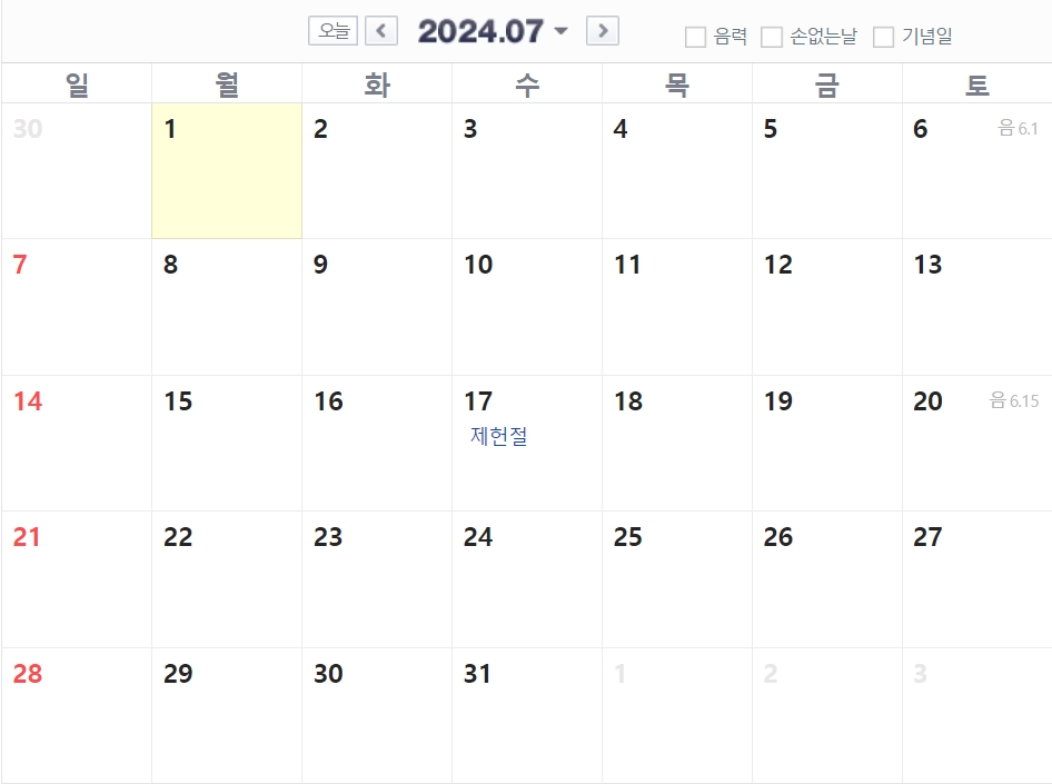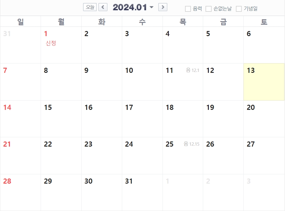2024년 공휴일