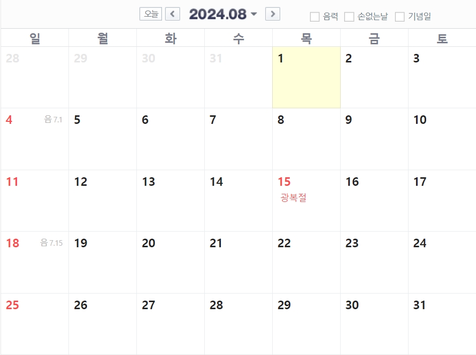 8월 광복절 최대 4일 가능