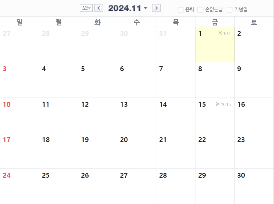 11월은 아쉽게도 공휴일이 없네요... 열심히 일하며 다음달을 기대해보시죠~